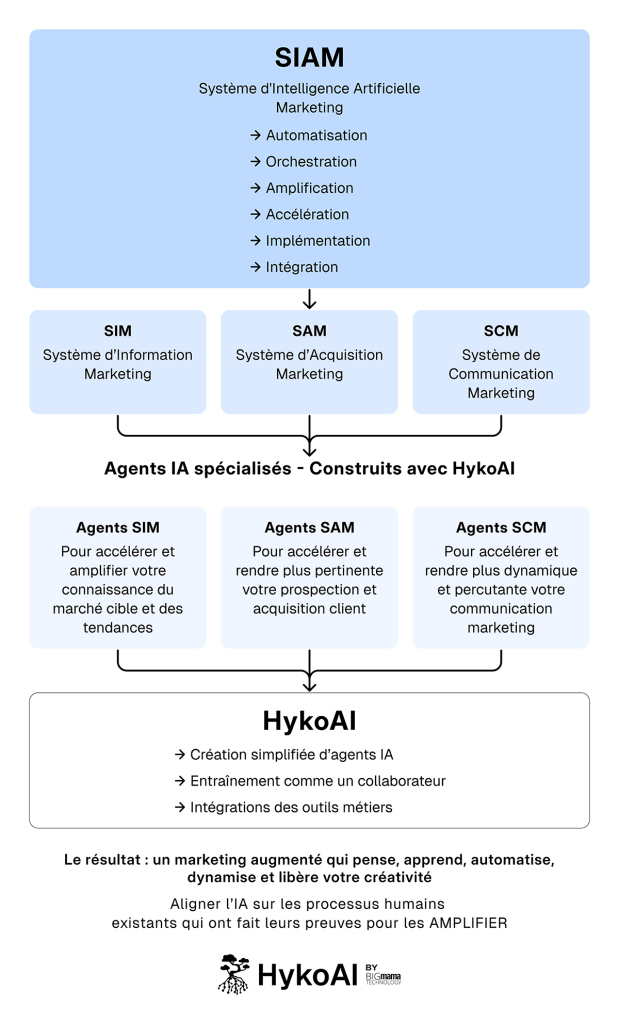 Pour comprendre la puissance du duo SIAM + HYKO, voici quelques exemples d’agents qui pourraient s’intégrer à votre chaîne de valeur marketing :